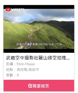 各位鄉親婦老兄弟姐妹們,這陣子在下空拍了不少台灣各地的美景! 山水無限好,因為有你們世界會更好! 這些作品目前在下參加了 台灣旅遊網 的票選活動,請伸出各位的溫暖雙手,再怎麼忙,也幫忙在下投下神聖的一票唄! 投票時請記得先在右上角按登入,只要用尊貴的fb帳號即可登入! 再至投票區